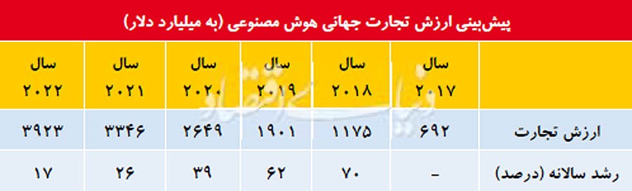 ارزش تجارت جهانی هوش مصنوعی تا پایان سال ۲۰۱۸ به حدود ۲/  ۱ تریلیون دلار خواهد رسید