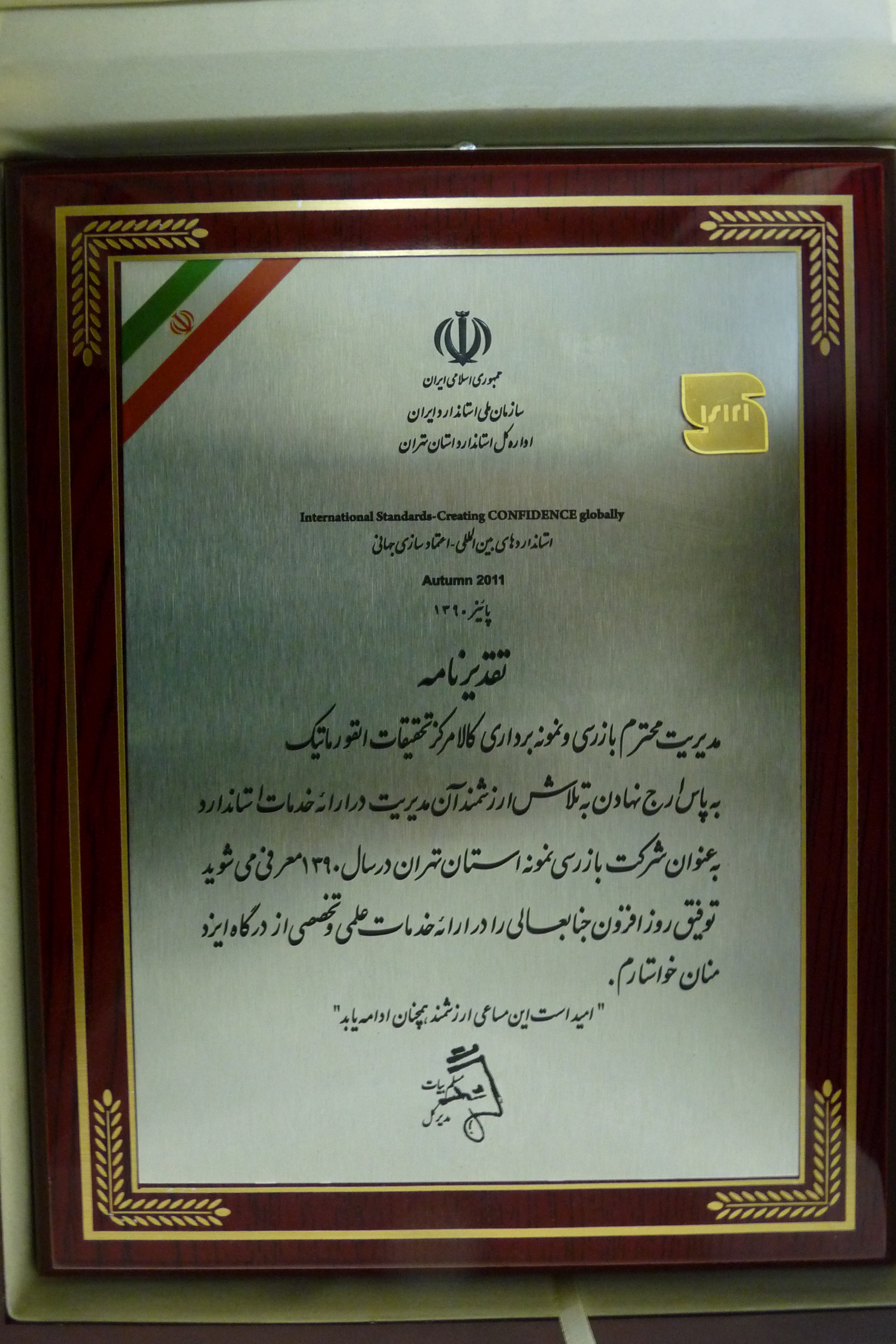 لوح سپاس شرکت بازرسی نمونه استانی سال 1390