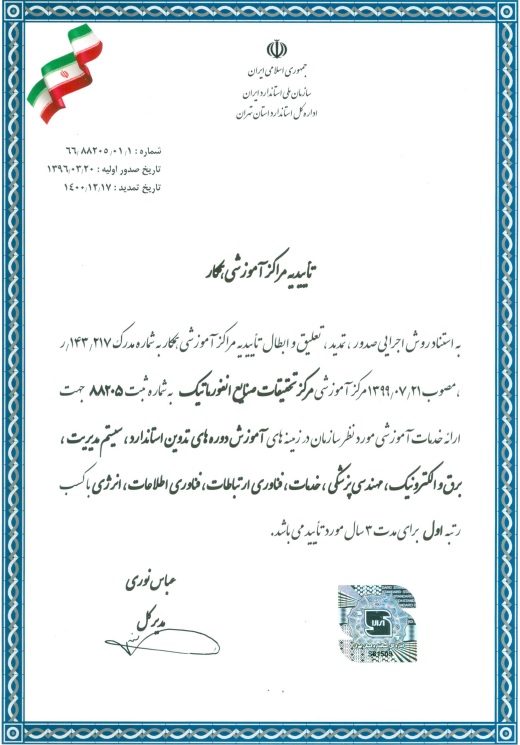 تأییدیه مرکز آموزشی همکار از اداره کل استاندارد استان تهران